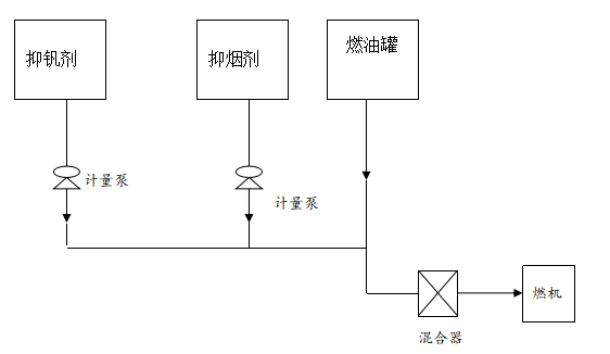 ③For gas turbine generator set, set a dosing device near the Vanadium inhibitor adding port, add TC-1026 into the Vanadium inhibitor outlet line with Vanadium inhibitor through metering pump and enter the heavy oil together with Vanadium inhibitor or choose to inject before entering the oil line with mixing function on the combustion engine. Injected before the mixing function of the equipment on the pre-fuel line to ensure full mixing with the fuel. The amount of smoke inhibitor added should be individually adjustable according to the oil quality and smoke generation condition.